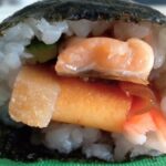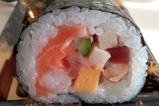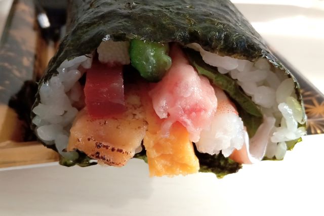 ただ上の写真をみてもらえばなんとなくわかると思いますが、具材と海苔のあいだにシャリが入ってない箇所があって、海苔が濡れてしまっていました。それで、食べていたらばらばらに崩れてきてしまいました。そこはちょっと残念。
